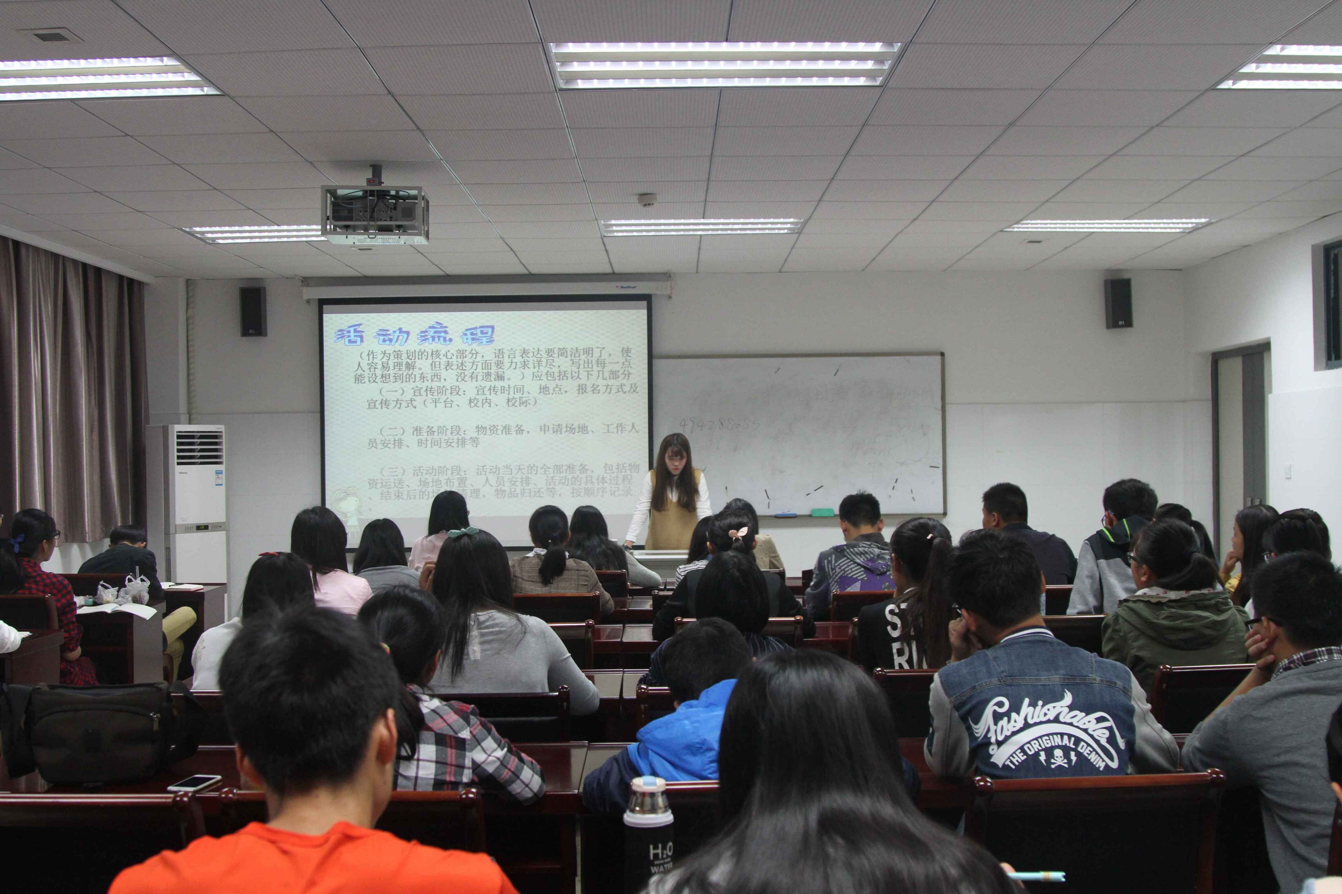 10月11日上午我院“食光学堂技能培训进校园活动”之策划培训在我校仙林校区食品科学与工程楼学术报告厅内开展。我院学生会组织部部长张逸男主持讲解。 张逸男部长就活动的背景、目的、对象、流程等方面逐一进行阐述。并以举例的方法让同学们更直观明了拟写策划书的流程和注意事项。她指出,在策划中活动目标要具体化,活动流程要通俗易懂。 最后,她鼓励大家试写一份完整的策划书, 以便更好掌握此次培训所学内容, 这既是对大一同学的锻炼,也是为日后更好地参与组织学生活动作好准备。